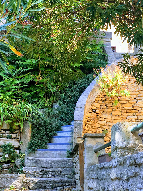 Gordes se visiterait plutôt vite si l’on n’y prête pas attention. Prenez le temps d’emprunter ses calades, ces ruelles à double gouttière en pierres, où le soleil joue à travers les massifs fleuris qui recouvrent les murs, quitte à rebrousser chemin au fond d’une impasse.