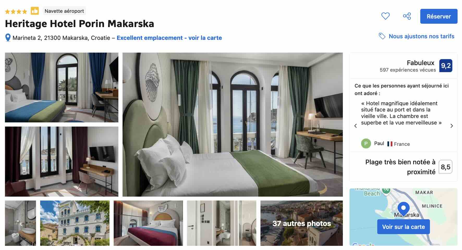 Un peu plus onéreux, mais aussi plus classe avec des prestations haut de gamme et un emplacement parfait, proche du centre de la vieille ville et pratiquement les pieds dans l’eau : l’hôtel Héritage Porin vous ouvre les bras ! Installé dans un ancien palais sur la promenade Riva, vous êtes à deux pas des restaurants et de la plage, à 500 mètres de l'embarcadère des ferries et à 20 minutes de route du parc naturel de Biokovo. Comptez une heure de route si vous voulez rejoindre Split s’il n’y a pas de bouchons.