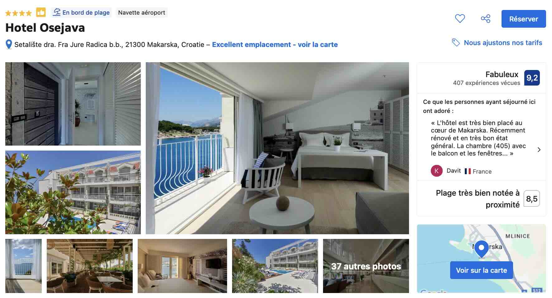 Vous avez aussi l’Osejava qui se situe à l’extrémité sud du port de Makarska. Ce sont pas moins de trois plages qui l’entourent et les chambres offrent des vues panoramiques sur la mer et sur l’île de Brac. Les logements sont proposés à partir de 80 euros avec les petits déjeuners. Ils sont un peu plus chers en pleine saison, mais vous pouvez limiter le prix en réservant tôt.
