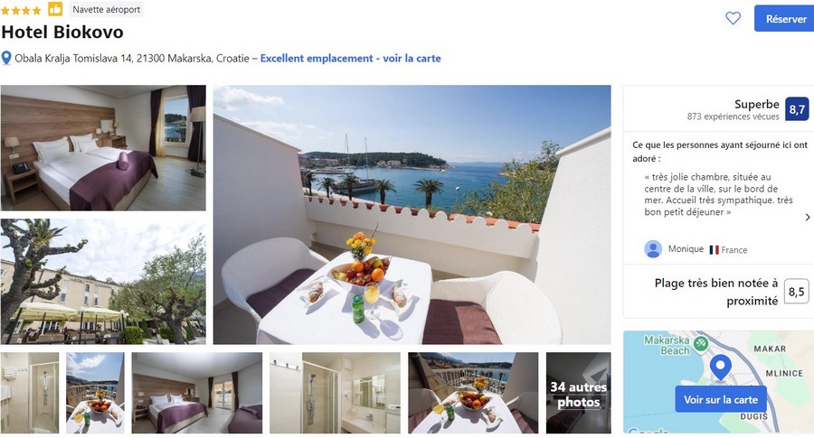 Le premier hôtel est l’hôtel Biokovo qui se trouve dans la zone orange, proche de l'embarcadère et qui proposent en plus des chambres avec vue mer. Ne réservez pas au dernier moment car les chambres partent vites (surtout pendant les beaux jours…) et les croates sont les champions pour augmenter les prix…