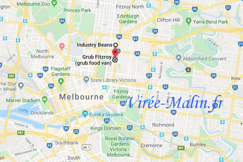 - Cliquez ici pour agrandir cette GoogleMap – Meilleures adresses à Fitzroy Melbourne :