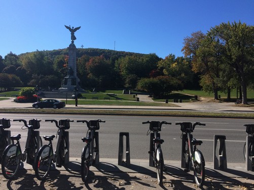 Maintenant, partons en direction du magnifique parc Mont Royal. La montée en vélo de location n’est pas simple donc à vous de voir ce que vous voulez faire, quoiqu’il en soit il y a une borne à vélo en bas de ce parc.