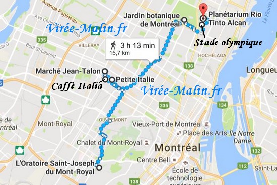 Cliquez ici pour agrandir la GoogleMap – Plan de route visite Montréal.