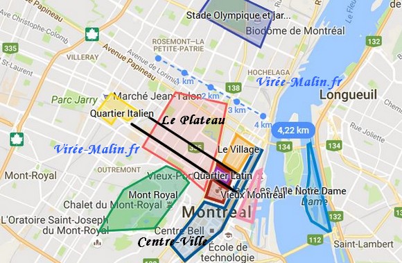 Pour commencer voilà une GoogleMap des quartiers de Montréal, vous pourrez le retrouver dans le guide à télécharger Gratuitement sur votre boite mail (le formulaire est juste en dessus).