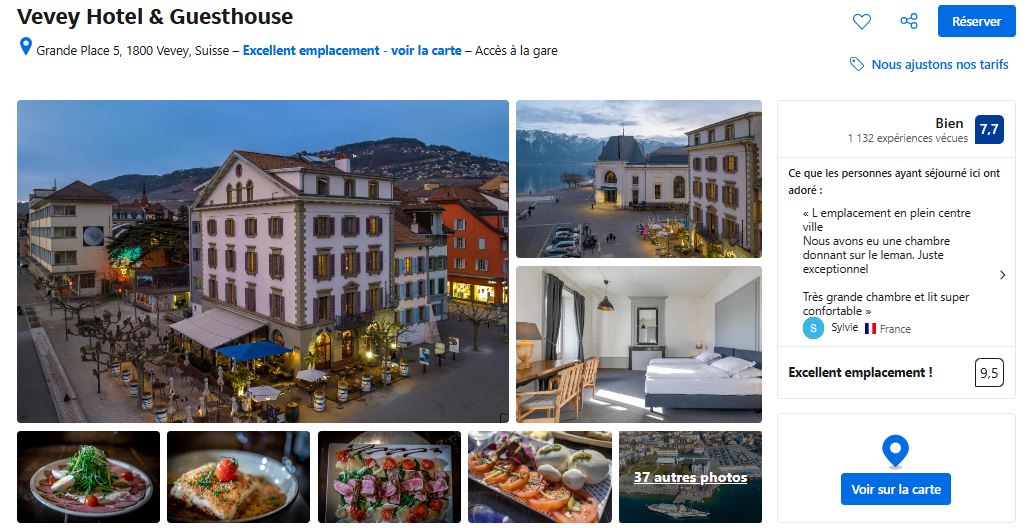 En effet, son emplacement et idéal pour un séjour à vevey car il est en plein coeur de Vevey et propose des chambre avec vues sur le lac Léman. Par ailleurs, vous serez séduit par sa terrasse et son ambiance familiale et chaleureuse. Parfait pour rester dans l’ambiance du Jazz Festival de Montreux.