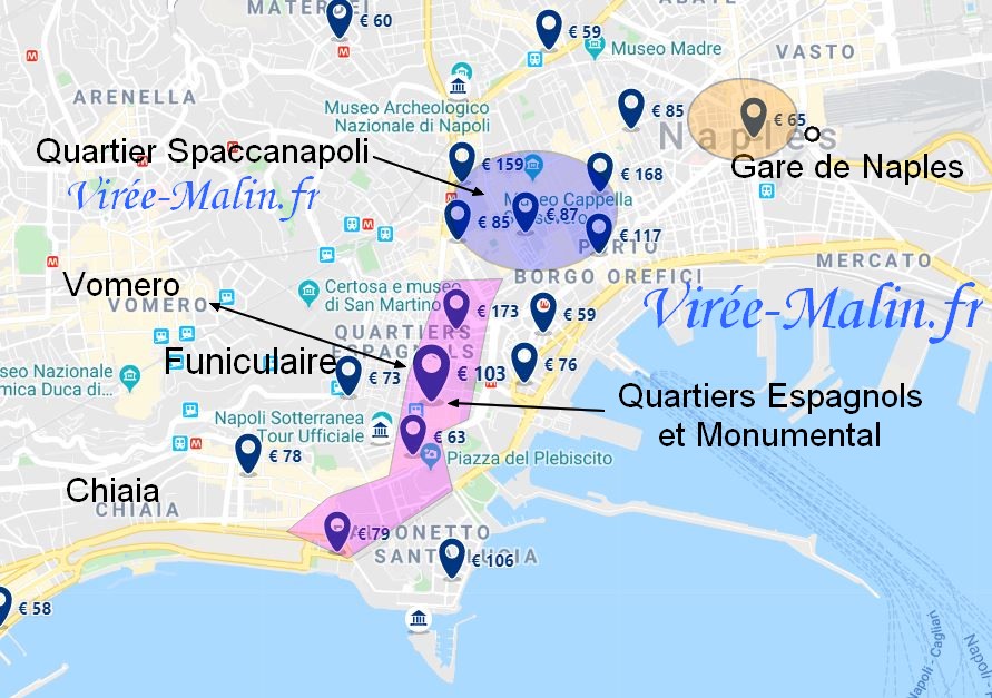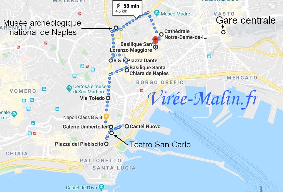 - Cliquez ici pour agrandir ce plan GoogleMap de Naples – Visiter le centre Monumental de Naples: