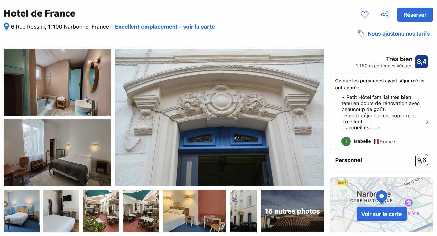 C’est le cas par exemple de l’hôtel de France, en périphérie du cœur de ville, à moins d’une centaine de mètres du marché couvert de Narbonne. La cathédrale est quant à elle située à environ une dizaine de minutes de marche. Vous pouvez également louer des vélos sur place.