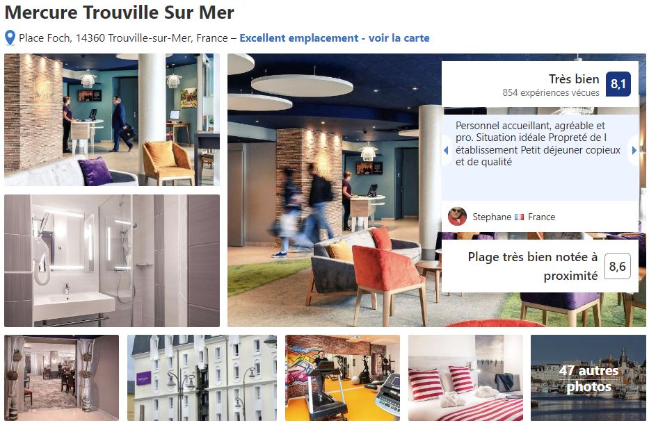 Vous avez le Mercure hôtel qui est idéalement placé à Trouville et vous permettra de sortir à pied le soir! Là vous êtes à deux pas du port de pêche. Moins cher que le Mercure (car c’est un très bel hôtel) vous avez l’hôtel 2 étoiles l’Estran qui est aussi idéalement placé!