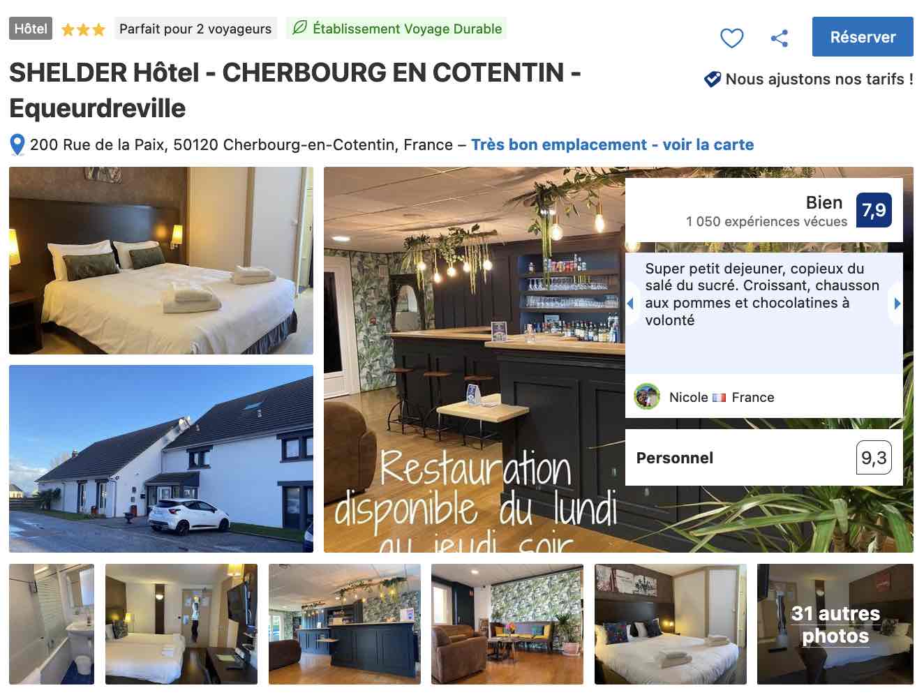 Légèrement en retrait de la ville, pour un calme plus relatif loin de l’agitation du centre, je vous recommande également l’hôtel Shelder sur la commune d’Equeurdreville. Les plages sont à moins d’une dizaine de minutes à pied et vous trouvez un centre aquatique à seulement deux petits kilomètres.