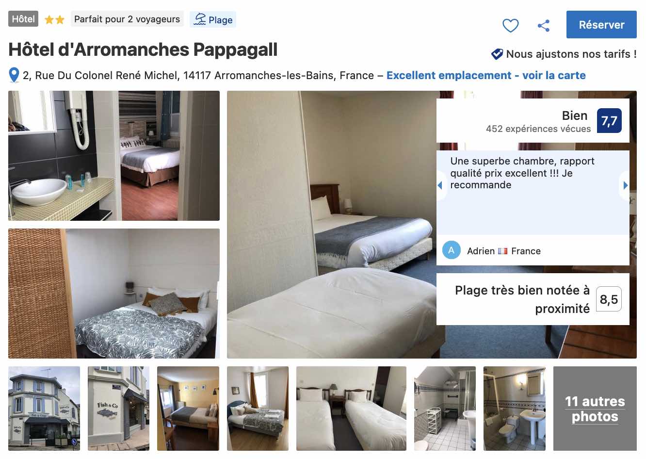 À Arromanches, l’hôtel Pappagall vous place à moins de 50 mètres de la célèbre plage et des vestiges du port artificiel construit par les alliés. Les prestations y sont standard, mais semblent avoir conquis les autres voyageurs ayant fait l’expérience des lieux.