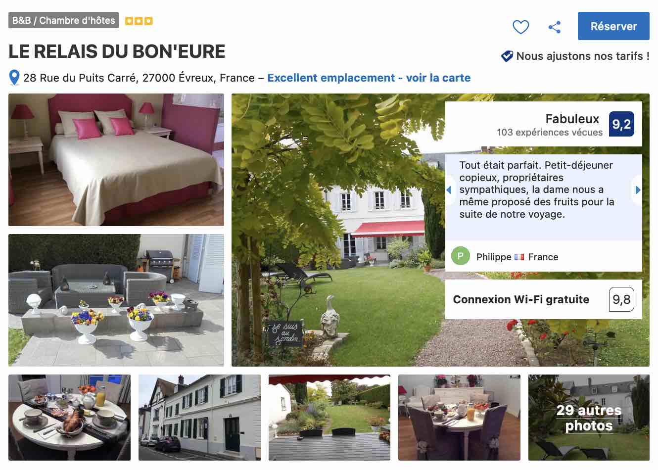 Autre adresse de qualité, également à proximité du centre d’Évreux, le Relais du Bon’Eure. Un établissement de charme avec un grand jardin vous permettant d’être situé en agglomération et de vous sentir à la campagne. Le prix de la chambre à cette adresse est légèrement plus élevé, mais les petits déjeuners sont compris. De quoi relativiser !