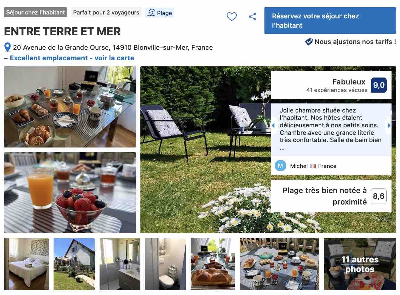 Plus dans les terres vous avez la chambre d’hôtes Entre Terre et Mer qui vous propose un hébergement sur la commune de Blonville sur mer à quelques encablures de Deauville et à moins de quinze minutes à pied de la plage d’East Beach. Une adresse calme, reposante et relativement abordable pour cette proximité avec Deauville.