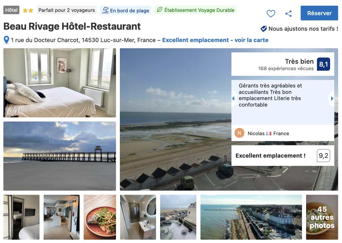 L’hôtel Beau Rivage à Luc-sur-Mer est un établissement de front de mer qui vous offre des prestations d’un excellent rapport qualité-prix, même s’il faut compter sur des tarifs un peu plus élevés si vous voyagez en période estivale.