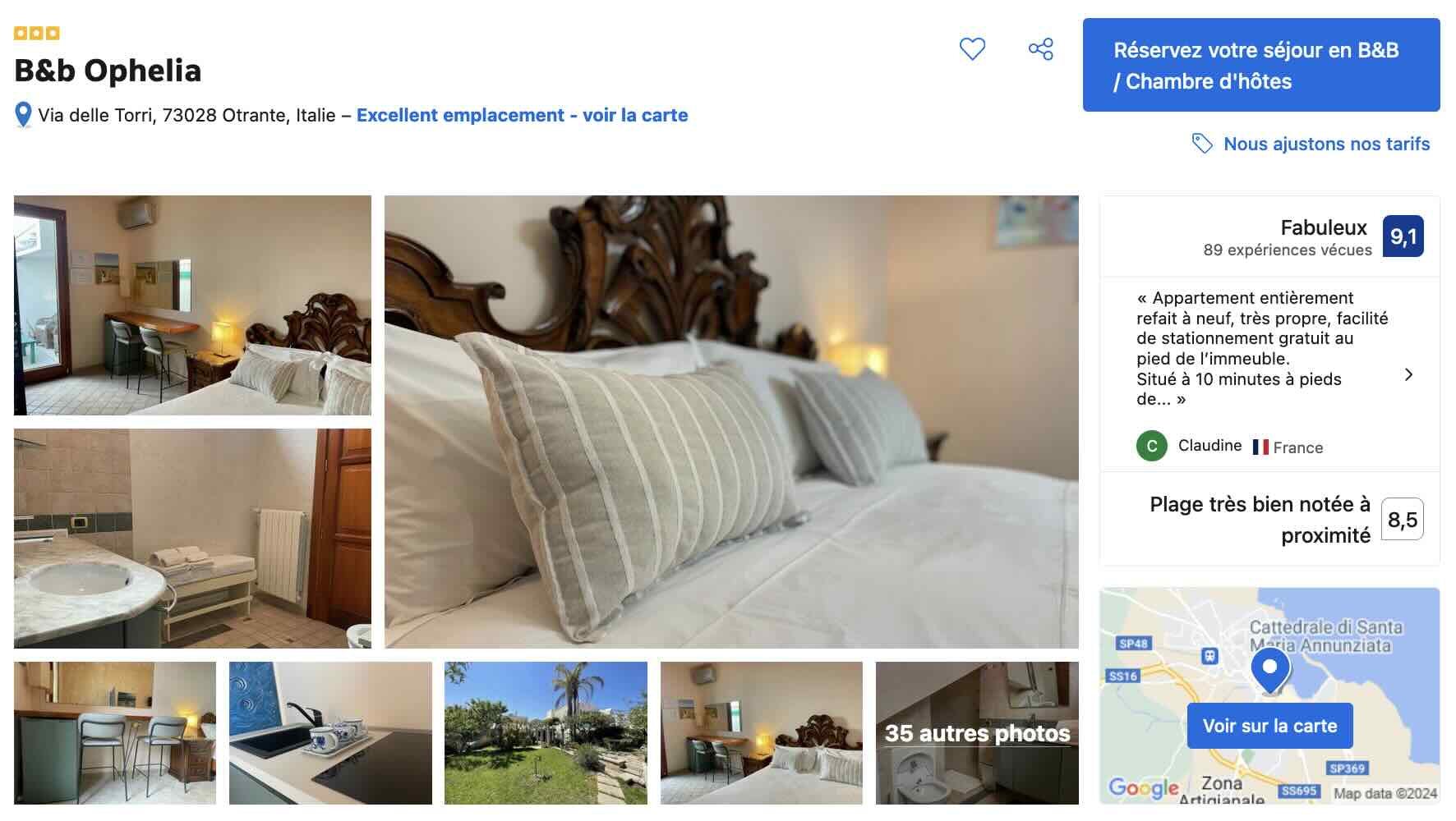 Enfin, pour un tarif un peu moins cher, pour vous situer juste en face de la Cathédrale d’Otrante et si vous aimez les chambres d’hôtes, je vous conseille le B&B Ophelia. Vous disposez de chambres tout confort à proximité immédiate du centre de la ville et des sites à visiter, tout en profitant d’un calme relatif dans une rue en léger retrait de l’animation. L’accueil y est familial et chaleureux pour des prestations d’un excellent rapport qualité-prix, eu égard à l'emplacement.