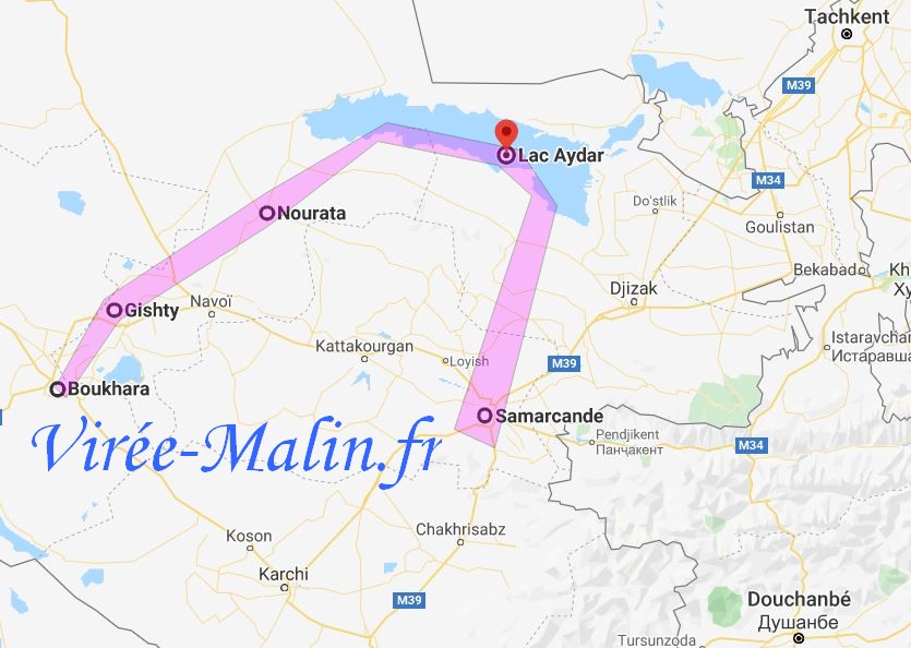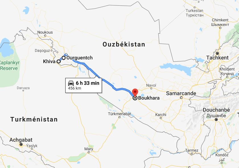 - Cliquez ici pour agrandir cette GoogleMap – Itinéraire Ouzbékistan – Ourguentch Khiva Boukhara Samarcande: