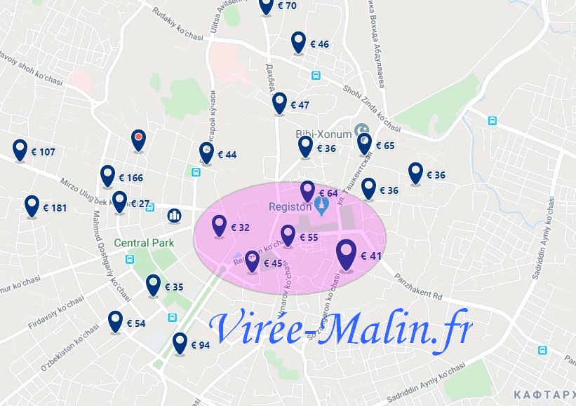 - Cliquez ici pour agrandir cet HotelMap – Où dormir à Samarcande :