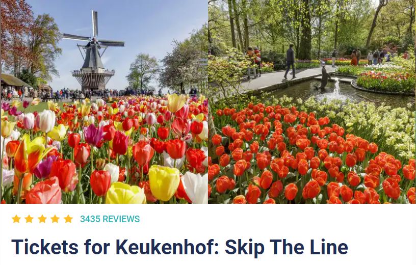 Encore une fois, si vous souhaitez réserver vos billets, et évitez de faire la queue, je vous conseille ce billet coupe file. Mais comme moi, vous pouvez aussi opter pour vous faire amener directement au parc de Keukenhof via un chauffeur!