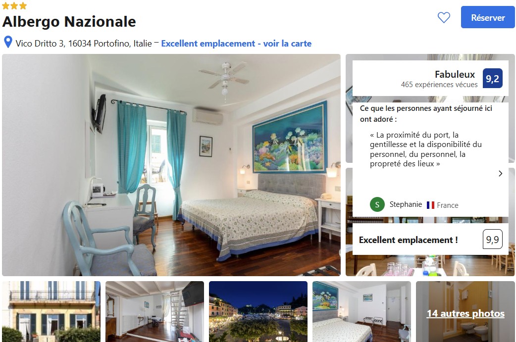 L’Auberge Nationale est un des rares hôtels à vous proposer de dormir au cœur du port de Portofino avec des tarifs qui restent somme toute parmi les plus attractifs de la ville même si tout reste relatif.