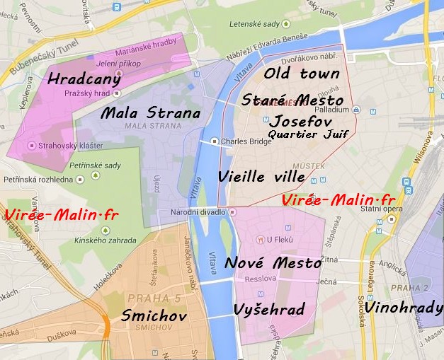 - Cliquez ici pour voir les hôtels qui se trouvent dans cette zone, mais sachez aussi que le quartier Mala Strana (zone orange) est vraiment très sympa! Donc cherchez dans ces 2 quartiers, vous serez idéalement placé!