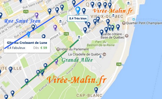 Voilà pourquoi la rue Saint Jean est un bon endroit pour trouver un logement. Vous pouvez voir aussi que la Grande Allée est à deux pas. Donc c’est bien aussi!