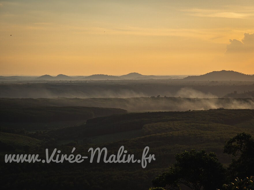Une fois en haut, le panorama est superbe : plantations, collines boisées, pistes ocre serpentant à travers la campagne…