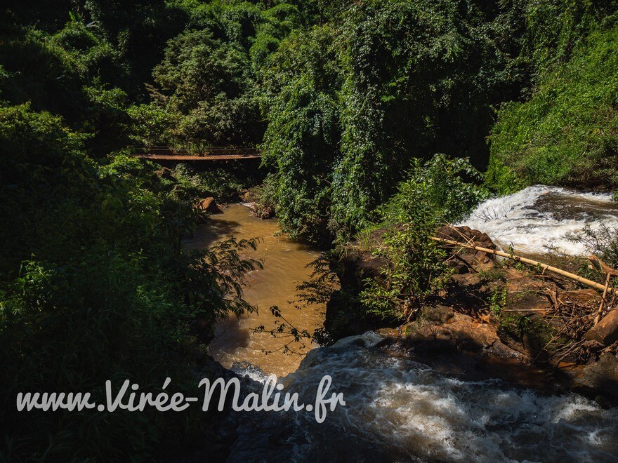 Après le village, on accède à la cascade en traversant un pont en bois suspendu… pas forcément très rassurant, mais qui fait clairement partie de l’expérience ! Une fois en bas, le cadre est idéal pour une pause, prendre des photos ou simplement profiter de la fraîcheur.