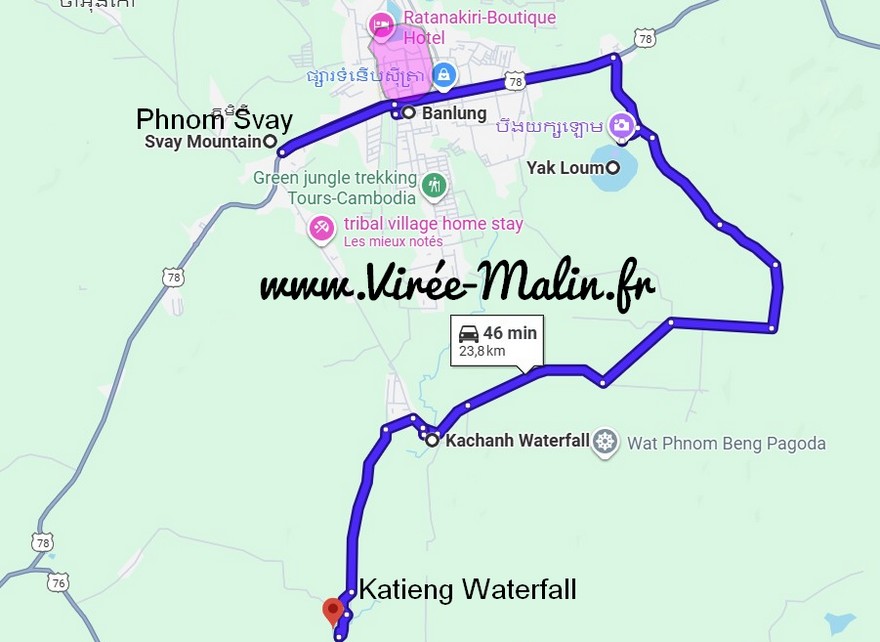 Je vous remets la carte où se trouvent les incontournables à faire à Banlung.