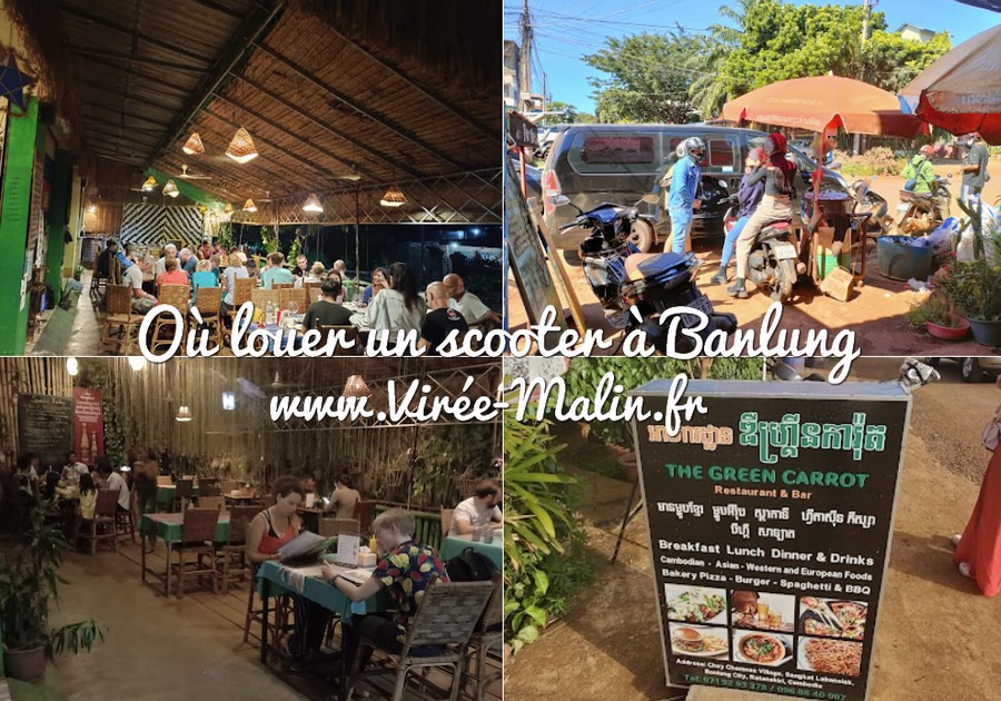 Il s’agit du “The Green Carrot Restaurant”, situé au sud de la ville. Ils proposent des plats khmers délicieux mais aussi tout un tas de plats occidentaux, de quoi varier les goûts ! J’y ai mangé midi et soir pendant mes 5 jours à Banlung.