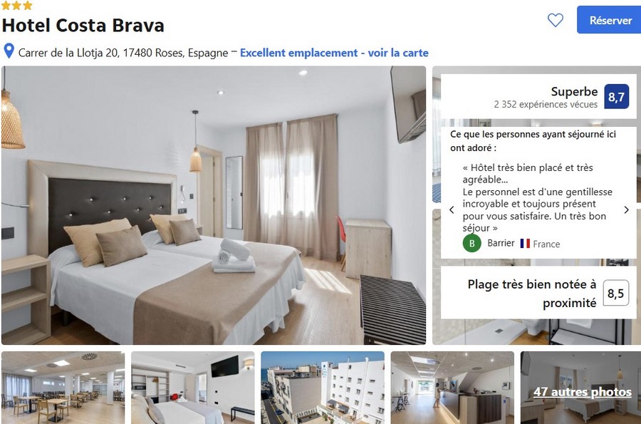 Le premier hôtel que je vous recommande est l’hôtel Costa Brava situé en plein cœur de ville et à quelques pas seulement de la Platja de la Punta.