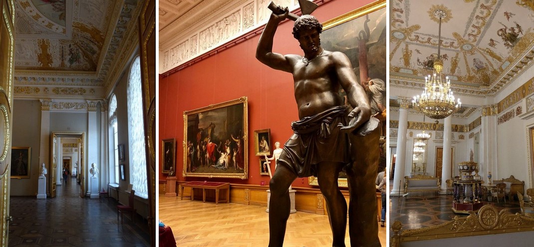 Ce palais-musée est composé de plusieurs bâtiments sur les rives du fleuve Néva. On dit que parcourir toutes les chambres et les salles reviendrait à parcourir 24km. Il comporte plus de 3 millions d’œuvres d’art (sculptures, peintures, …) et dispose de collections d’art français, d’art moderne, et de collections italiennes.