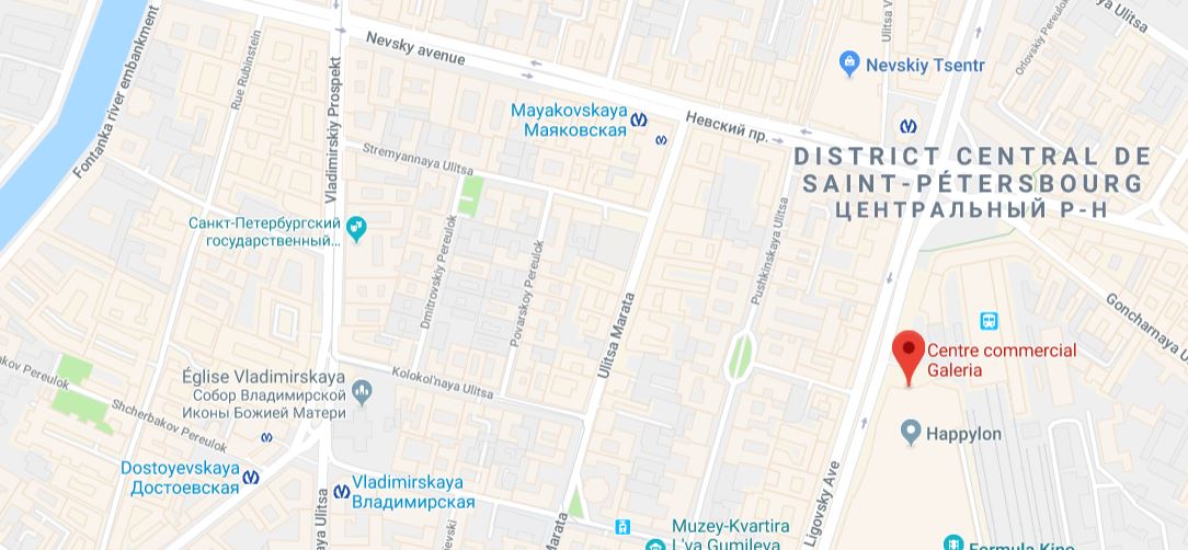 - Cliquez ici pour agrandir cette GoogleMap – Visiter Saint-Pétersbourg centre commercial Galeria Shopping Mall
