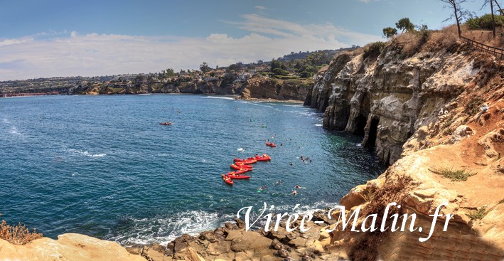 La ville borde l’océan pacifique et la côte sauvage est préservée. Deux petites randonnées sont proposées, l’une sur les magnifiques falaises de grès du parc de Torrey Pines d’où on peut voir à l’occasion des dauphins et l’autre dans un slot canyon, un canyon étroit caché dans une lagune.