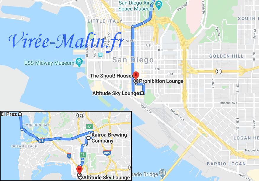 - Cliquez ici pour agrandir cette GoogleMap – Où sortir à San Diego :