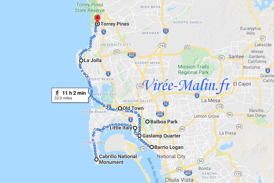 Les incontournables de San Diego. Voilà une petite GoogleMap qui vous permet de voir où se trouve les visites de San Diego que vous devez faire.