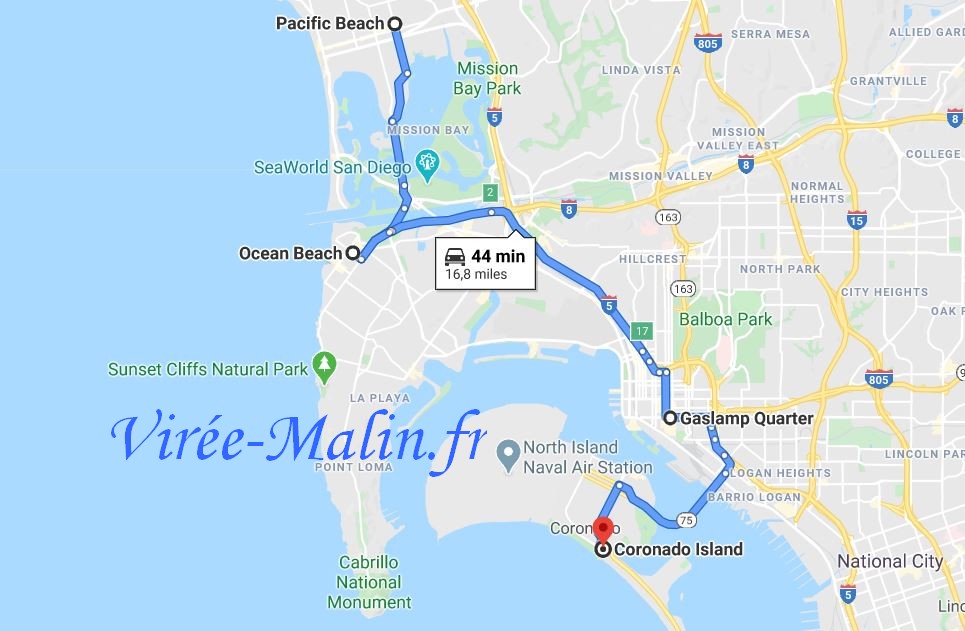 - Cliquez ici pour agrandir cette GoogleMap – Que visiter à San Diego :