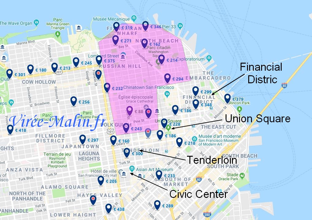 - Cliquez ici pour agrandir cette GoogleMap – Quel quartier sortir à San Francisco :