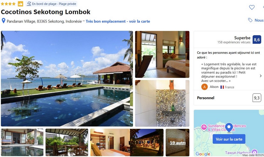 Si vous avez un budget plus élevé, il y a deux établissements, plus à l’ouest qui offrent des conditions vraiment impeccables, un cran de standing au-dessus des autres. Il s’agit du Sundancer Residence et du Cocotinos Sekotong.
