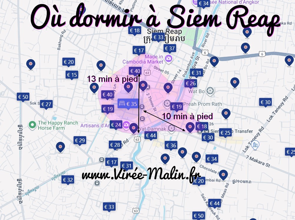 Avant de commencer, voilà une GoogleMap de Siem Reap, histoire d’avoir une vue global sur la zone géographique…