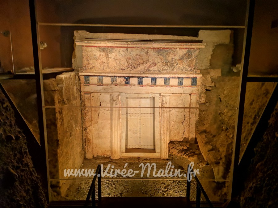 Le clou de la visite, c’est évidemment le tombeau de Philippe II. Extérieurement, il ressemble à une façade monumentale en pierre, mais ce qu’il contient surprend vraiment :