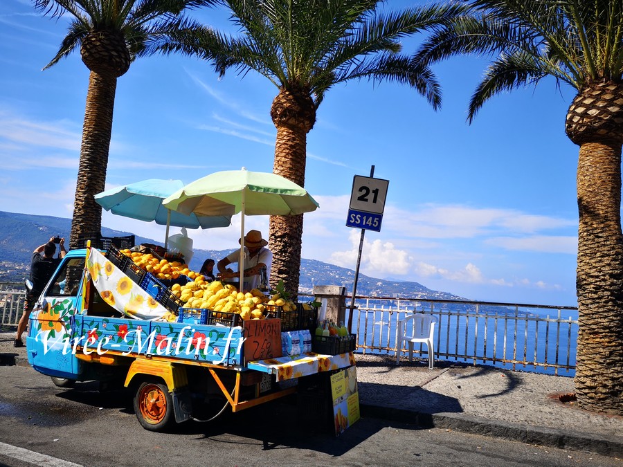 Sorrente était déjà très fréquentée à l’époque romaine par la « jet set » italienne. Ajoutez à cela un microclimat exceptionnel qui donne une nature généreuse en oliviers, orangers et les meilleurs citrons d’Italie (d’où la fabrique du délicieux limoncello).