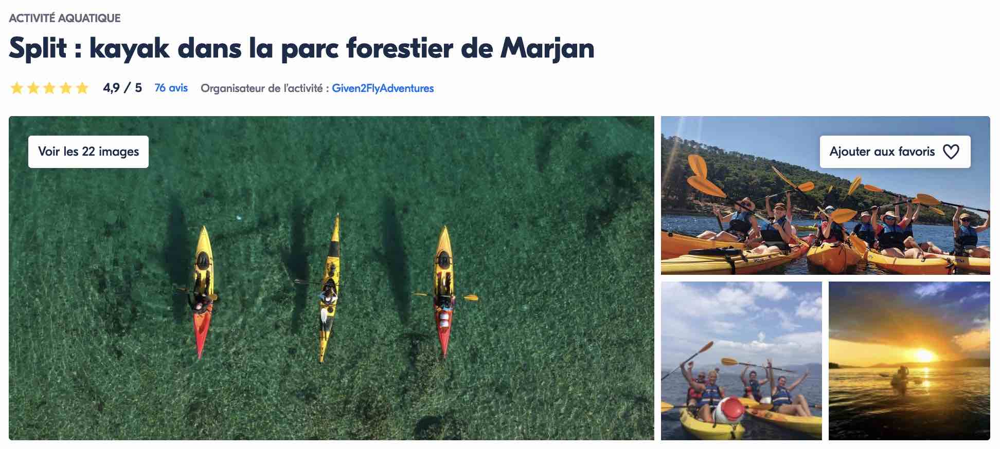 Autre activité plus calme, cette visite du parc forestier de Marjan en kayak de 4 heures. Vous pourrez bien sûr plonger dans les eaux cristallines de la région pour découvrir la faune aquatique de la mer Adriatique. Pour le départ, votre guide anglais ou croate vous attendra à proximité du monastère franciscain de Saint-Antoine et du stade Poljud de Split.