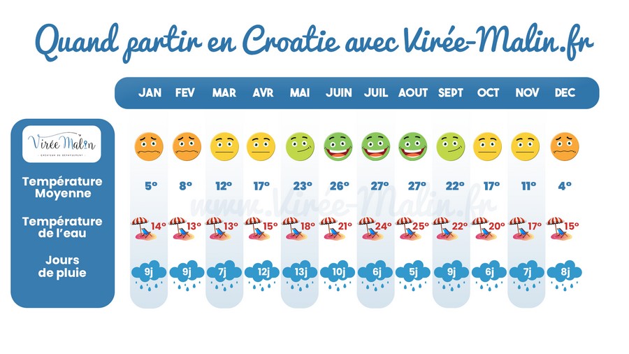 Je vous recommande de visiter Split entre la mi-avril à la mi-octobre : les températures restent douces à ces périodes-là. Dans l’idéal, essayez d’éviter le mois de juillet et surtout le mois d’août pour échapper à la horde de touristes qui affluent dans la ville pour les vacances d’été. Mais, si comme moi vous partez visiter Split en plein mois d’août, pensez à réserver votre logement rapidement. N’hésitez pas à consulter mon article dédié : Où dormir à Split.