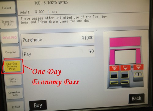 Tout d’abord vous mettez l’écran en mode Anglais sauf si vous parlez Japonais mais j’en doute. Puis cliquez sur One Day Economy Pass