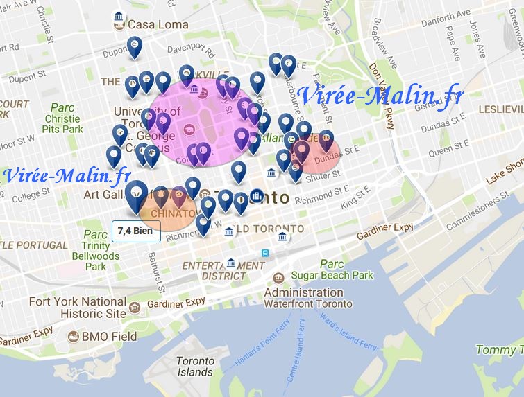 - Cliquez ici pour agrandir cette GoogleMap – où sortir à Toronto :