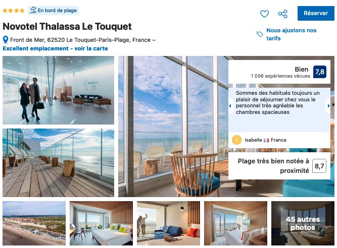 Enfin, si vous souhaitez dormir au Touquet Paris-Plage en ayant pratiquement les pieds dans l’eau, je vous conseille deux établissements situés sur la plage du Touquet à la périphérie sud du centre-ville.