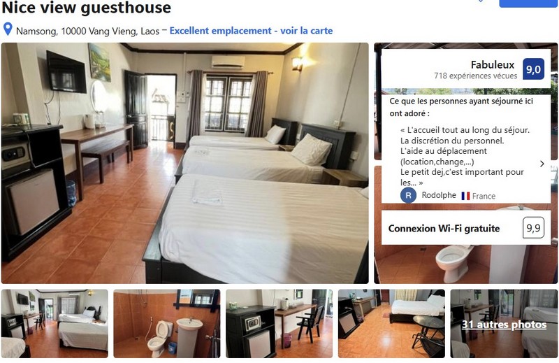 À Vang Vieng, j’ai séjourné au Sky Hotel puis au Nice View Guesthouse. Je conseille ces deux adresses sans hésiter. Situé en plein centre, ils offrent tous les deux une vue directe sur les montagnes et les montgolfières. Je recommande vivement !