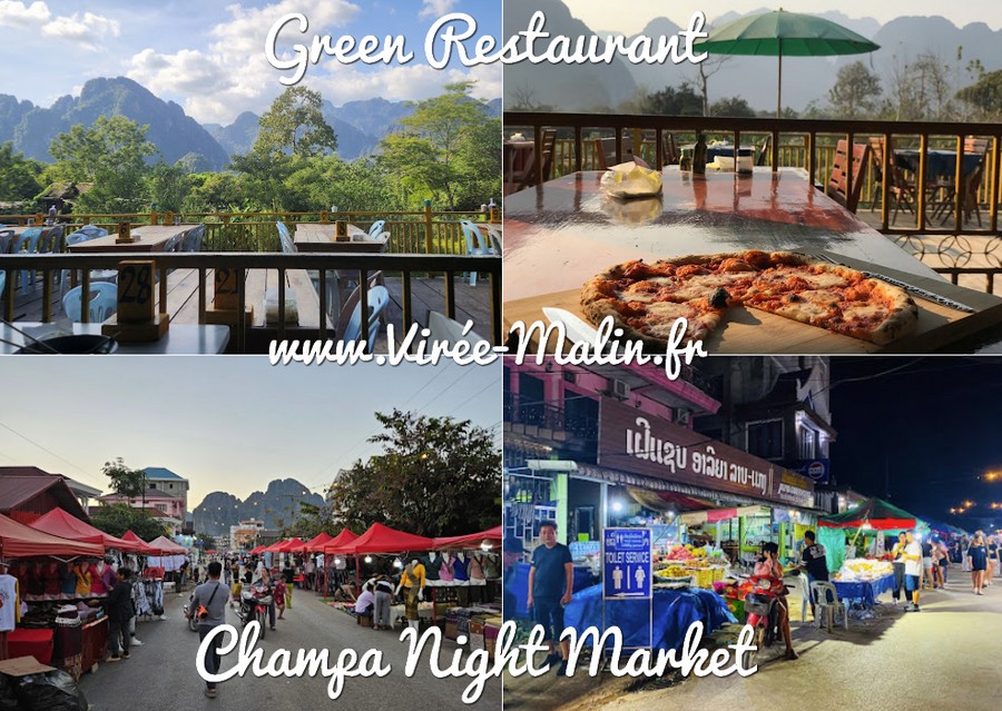 Mention spéciale au Green Restaurant, la nourriture y est délicieuse et sa terrasse en extérieur donne sur l’une des plus belle vue depuis le centre ! De plus, les prix sont vraiment très bas, j’y ai pour ma part passé pas mal de temps lors de mon séjour à Vang Vieng.
