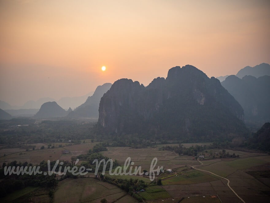 Bien que ce soit un coût, c’est le tour en montgolfière le moins cher du monde. Donc si ce genre d’activité est sur votre liste et que vous êtes de passage à Vang Vieng, renseignez-vous dès votre arrivée, le cadre est incroyable. Depuis le ciel on a une vue splendide sur la vallée karstique de la rivière Nam Song, sur les rizières et les formations rocheuses environnantes… C’est à couper le souffle !