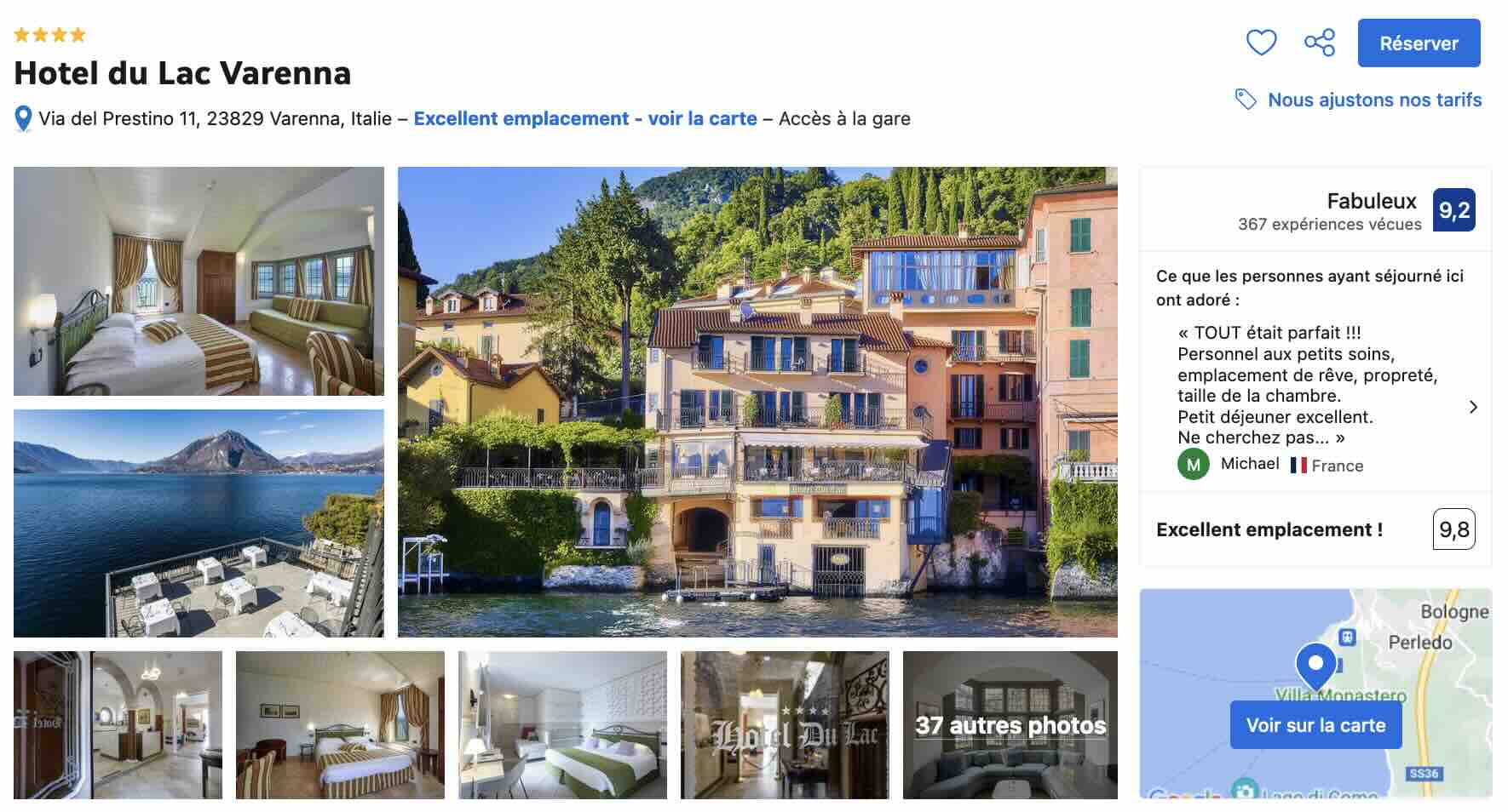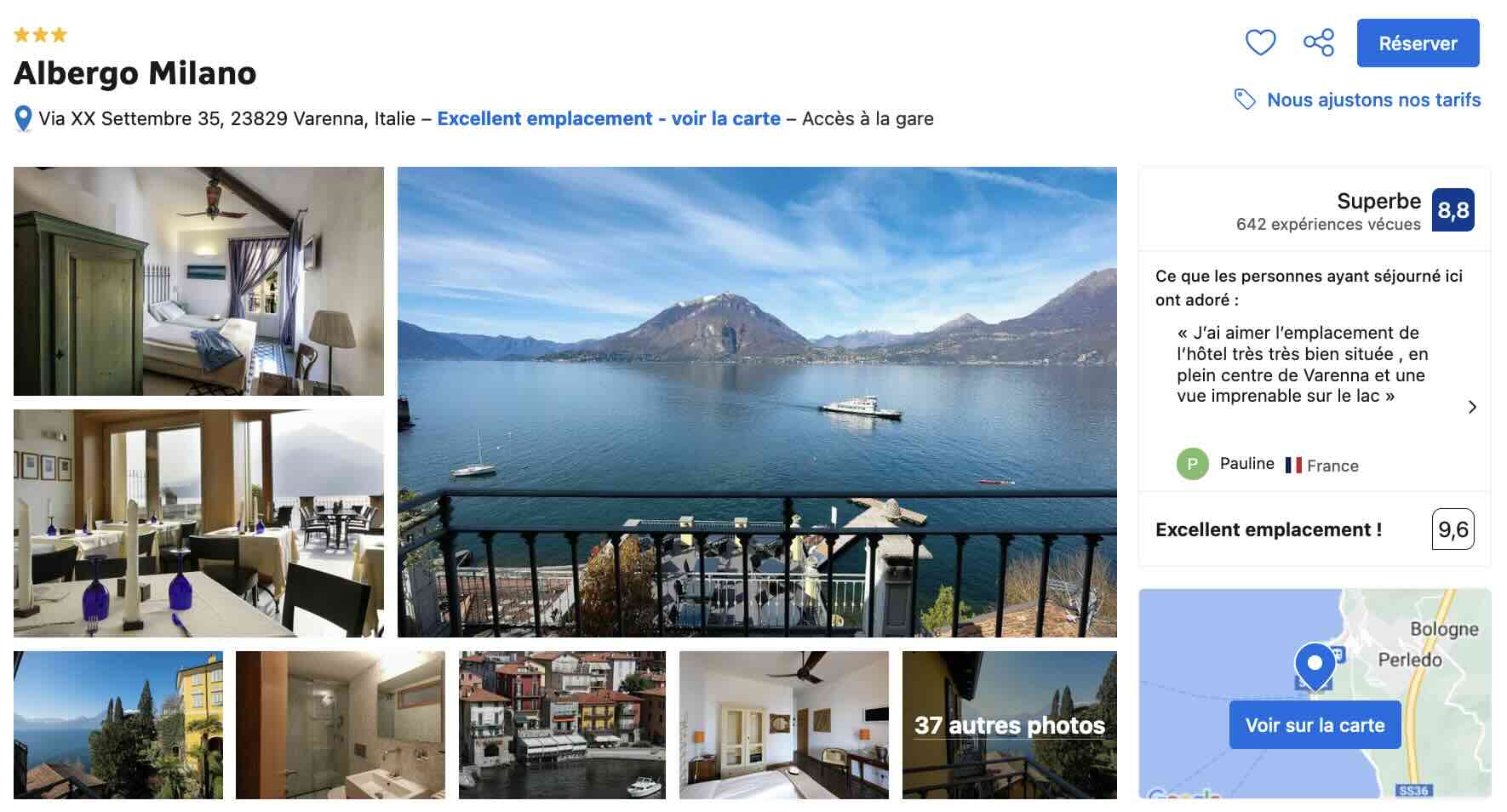 Un peu plus au nord, mais toujours dans le centre de Varenna, vous avez aussi l’auberge Milano. Vous avez le choix de louer une chambre ou un appartement indépendant avec vue sur le lac. Pensez à demander un logement avec cette prestation car l’établissement est divisé en 3 bâtisses distinctes, dans un rayon de 50 mètres, mais avec des vues différentes.