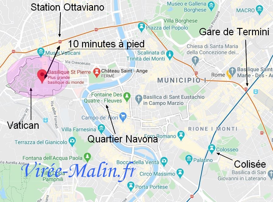 Pour allez au Vatican, arrêtez-vous à la station de métro Ottaviano (voir plan ci-dessus).